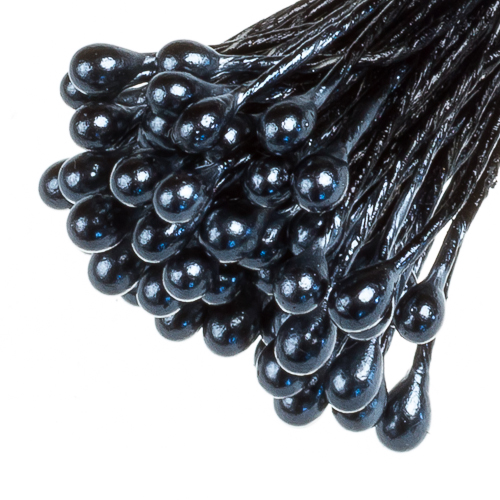 Gyöngyházfekete, kerek, kis méretű bibefejek, fekete szálon, kisebb és közepes cukorvirágok készítéséhez. Kiváló minőség Japánból.