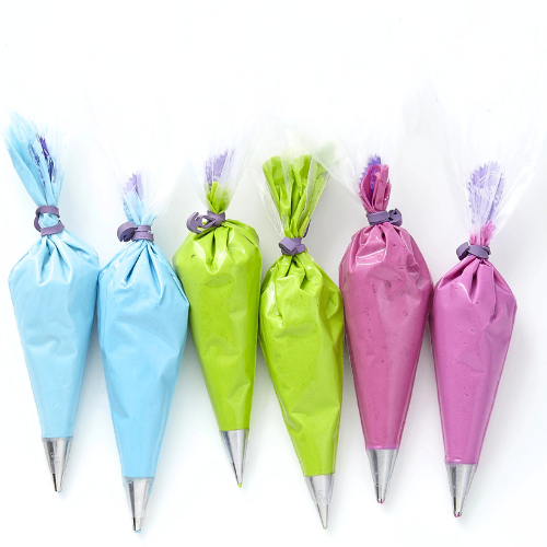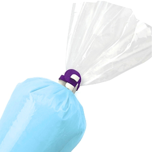 Wilton újrefelhasználható habzsáklezáró gumigyűrű habzsákos dekorálás megkönnyítéséhez. A zárók használhatók vajkrém, cukormáz, habcsók és más anyagok kinyomásakor is; biztosítják, hogy a zsák teteje zárva maradjon, így semmi sem szivárog ki, amikor nyomjuk vagy letesszük a zsákot.